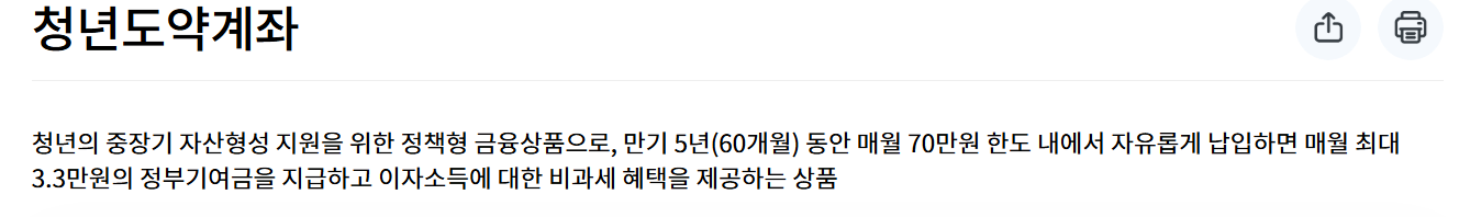 해당 계좌는 단순한 적금이 아니라, 일정 소득요건을 충족하는 청년에게 정부 보조금 + 비과세 혜택을 함께 제공한다는 점에서 파격적인 금융상품이라 할 수 있습니다.
